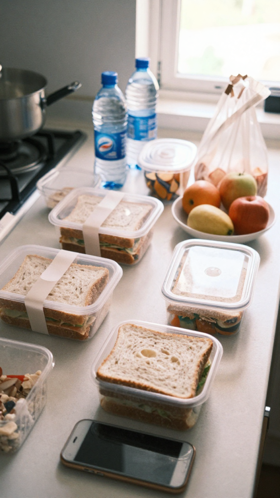 Takeaway: Packing food saves money and avoids stress.